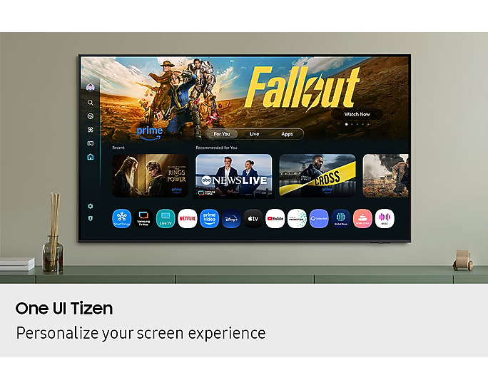 QE1F 搭載三星 Tizen 作業系統,運作速度快、直覺易用,並搭載 Vision AI 功能。它可自動偵測內容類型並調整畫質和音效設置,以獲得最佳效果。