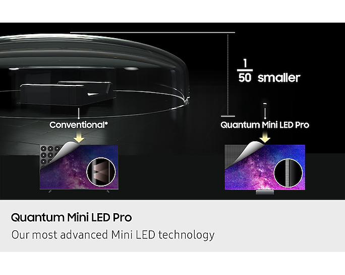 搭載 Neo QLED 技術,結合量子點與 Mini LED 背光,提供更精細的亮度控制與更高的對比度。