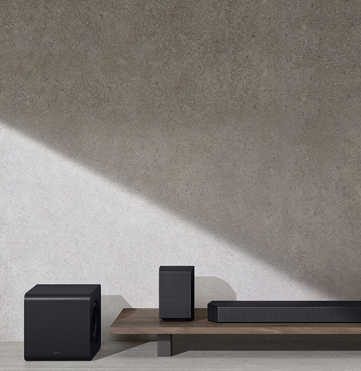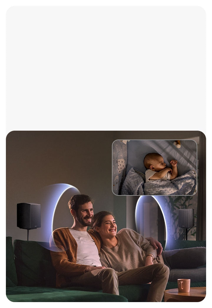 • 家居美學:纖薄的條形音箱和緊湊的低音炮與現代室內設計完美融合。