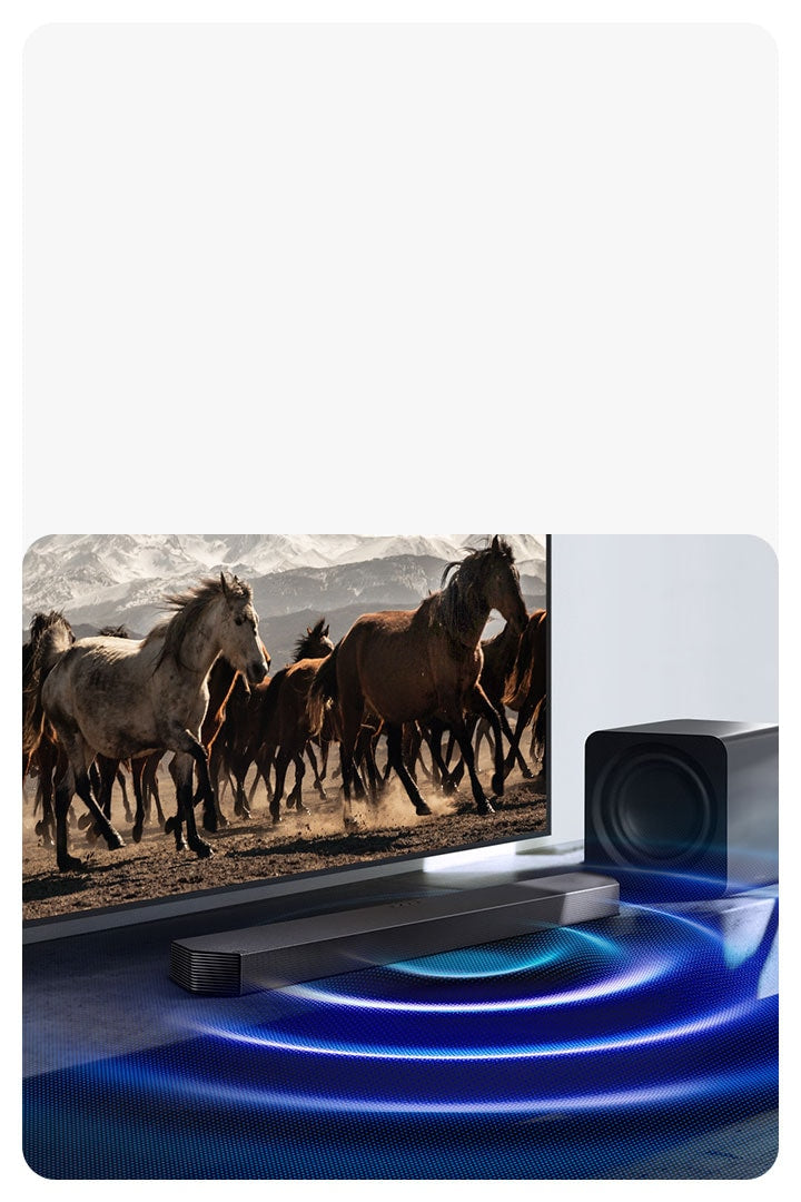 全新設計的低音炮更緊湊,但音效強勁,配備 6.5 吋主動單元和 8 吋被動輻射器。它能夠產生深沉、震撼的低音,增強電影中的爆炸聲,為音樂增添衝擊力,並在每個場景中營造臨場感。