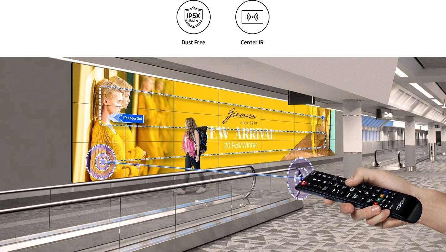 With a brightness level of 500 nits, the Samsung VMT-U ensures content remains clear and visible even in brightly lit environments. This makes the display suitable for locations such as shopping malls, airport terminals, and corporate lobbies.